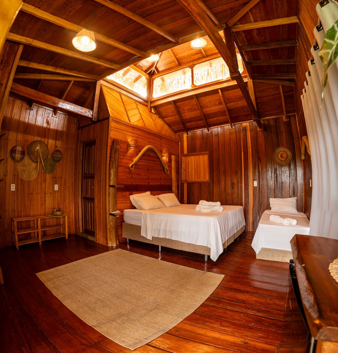 El punto culminante de este chalé es su amplia terraza privada, que se abre a una vista impresionante de la selva circundante. Durante la temporada de lluvias, el lago se acerca al chalé, permitiéndote despertar con el sonido de los peces por la mañana y avistar caimanes al anochecer. Relájate en la tranquilidad de la naturaleza, escuchando las aves tropicales mientras te sumerges en esta experiencia única en la Amazonía. Es el escenario perfecto para una estancia que combina lujo con la belleza incomparable de la selva. Reserva ahora para vivir lo mejor de la elegancia amazónica.